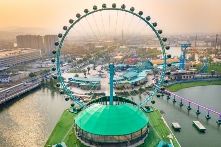 建設(shè)總高度達(dá)88米,掛有42個(gè)太空艙。從遠(yuǎn)處看像是五彩繽紛的巨大風(fēng)車(chē)在緩緩轉(zhuǎn)動(dòng),又似一顆顆晶瑩的珍珠鑲嵌于大轉(zhuǎn)盤(pán)之上。