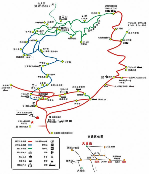 4、天目山景區(qū)內(nèi)須換乘景區(qū)觀光車(chē),上下山30元/人,步行上山的游客,下山也可在龍鳳尖停車(chē)場(chǎng)換乘觀光車(chē)下山,15元/人。