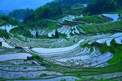 或?qū)捇蛘奶萏,一長(zhǎng)條一小塊,不規(guī)則地依山勢(shì)上下伸展。最小的梯田田畔,被稱(chēng)為“巴掌田”,即便春種一兜稻秧、秋收一把稻谷,也不會(huì)輕易放棄。歷經(jīng)千百年實(shí)踐,先人積累了墾種梯田的豐富經(jīng)驗(yàn)。無(wú)論何樣貧瘠陡峭的山地,但凡人跡所至之處,就有了人造的梯田。