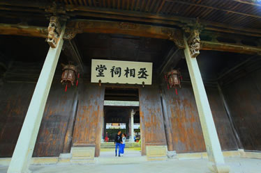 丞相祠堂也是為紀(jì)念諸葛亮而修建的,與大公堂相距百米,面積1400平方米。坐東朝西,平面按“回”字形布局,有屋52間,由門廳、中庭、廡廊、鐘鼓樓和享堂組成,古樸渾厚,氣勢非凡。祠堂雕梁畫棟,門窗欄桿等部件均雕刻精細(xì),美不勝收。中庭是祠堂最精彩的部分,中間四根合抱大柱,選用上好的松、柏、桐、椿四種木料制成,取“松柏同春”之意,祈求家族世代興旺。中庭兩邊廡廊各七間,塑諸葛后裔中的杰出人士,用來激勵(lì)諸葛子孫們奮發(fā)向上,成就一番事業(yè)。從廡廊拾級而上,兩旁分列鐘、鼓二樓。祠堂最后是享堂,中塑諸葛亮像,高2米余,兩側(cè)分侍諸葛瞻、諸葛尚及關(guān)興、張苞像,氣韻生動(dòng),呼之欲出。